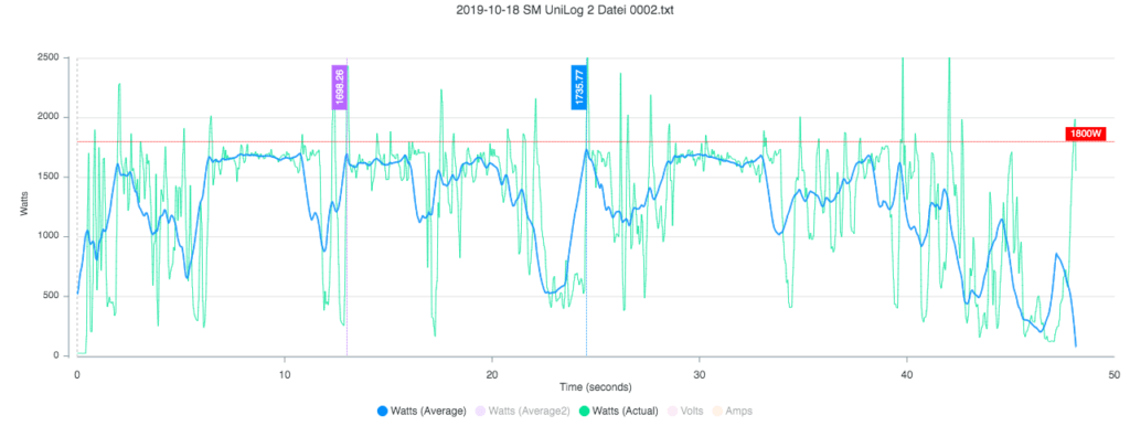 DCL は今年から使用電力量の制限が新たにルールに追加されてて、1.8KW を超えると失格なっちゃうんすね、、、RAIDEN の今年のバッテリーは 25.2V(6セル)なので 1.8KW / 25..2V = 71.4A 超えるとアウト。これって通常のフルスロットルの 60% ぐらいしか出せないつーことなんだけど、まあ、要はゆっくり飛ばさせることで、観客に見やすくするっていうことなんですな。こういうポイントも事前にちゃんと調整しとくべきなんだけど、ちょと時間足らなかったやね🤔